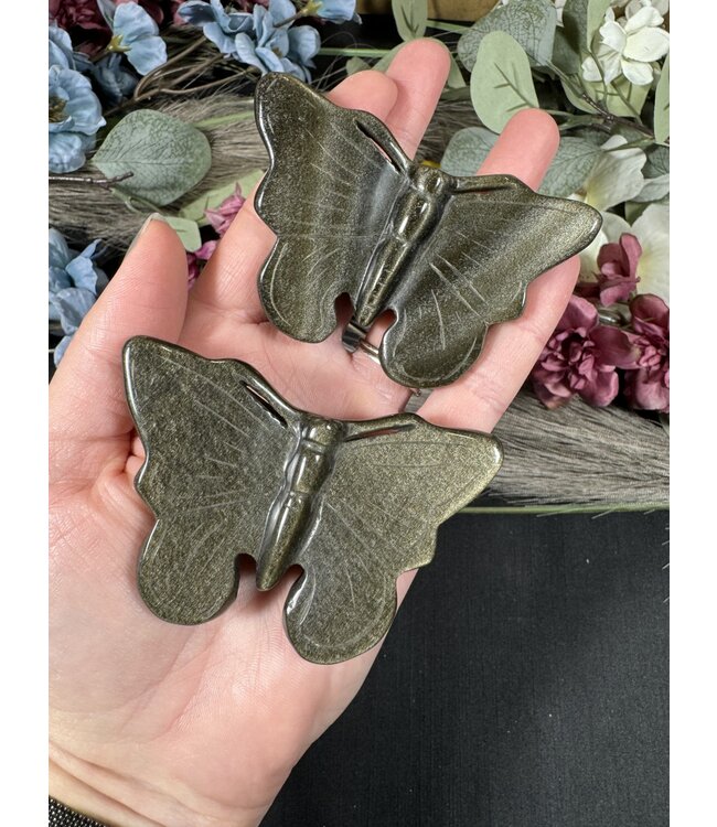 All Natural Gold Sheen Obsidian Butterfly Carving