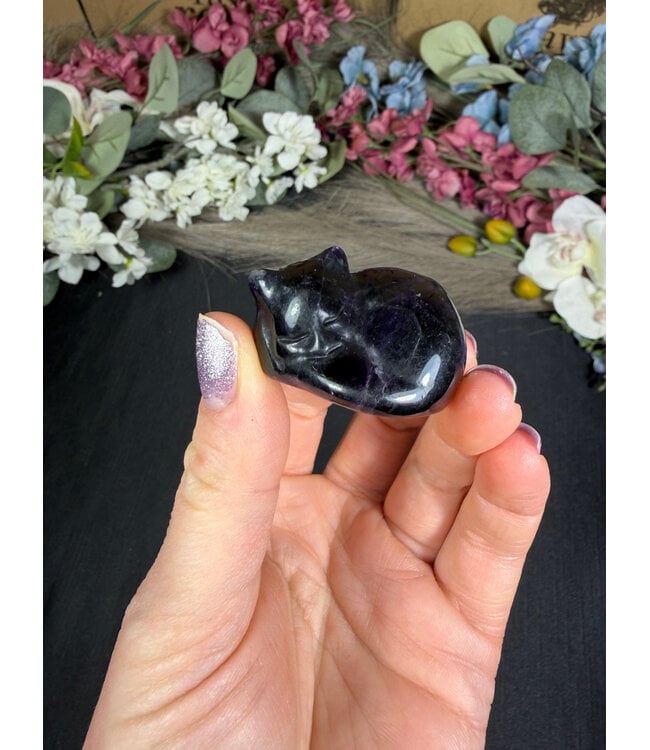 All Natural Fluorite Sleeping Cat Carving