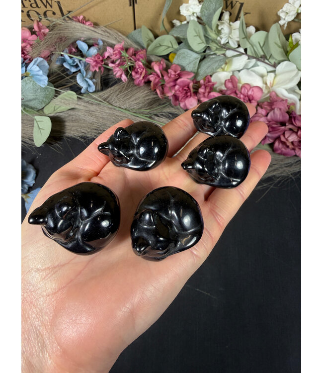 All Natural Silver Sheen Obsidian Sleeping Cat Carving