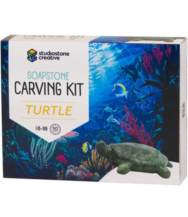 Embark on a creative journey with our carefully crafted five-step guide, designed for children aged 8 and above to effortlessly carve a captivating turtle from raw soapstone. This delightful family activity, curated by Studiostone Creative, offers relaxation and satisfaction while fostering a deeper connection with nature. Immerse your family in the enchanting process of molding pliable stone into a work of art. Our 100% eco-friendly kits, meticulously created in Canada by two local artists, bring an element of magic to each creation as they reveal a surprise natural color during the waxing process. Experience the joy of collaborative creativity with Studiostone Creative's accessible and environmentally conscious soapstone carving kit, complete with a fold-up diorama and intriguing fun facts about animals. Our visual instructions now feature QR codes for helpful videos at each step.