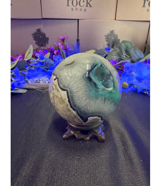 Fluorescent Agate Sphere #28, 102.3mm, 1420gr
