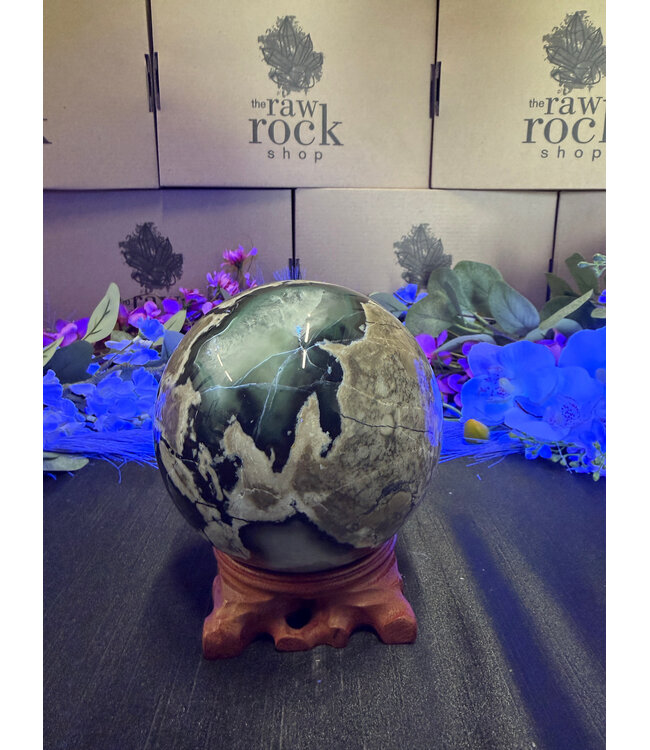 Natural Fluorescent Agate Sphere-- aka Volcano (Volcanic) Agate