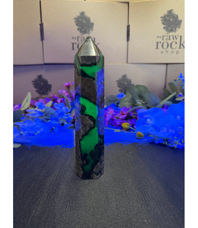Natural Fluorescent Agate Tower -- aka Volcano (Volcanic) Agate