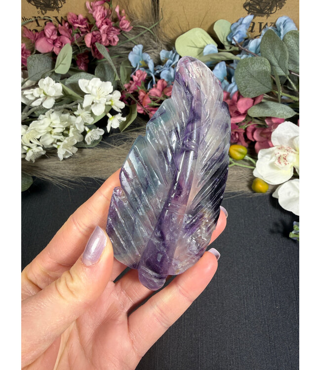 Natural Rainbow Fluorite Feather Carving