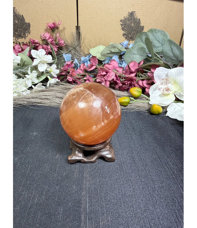 Honey Calcite Sphere #4, 374.57gr, 63.9mm