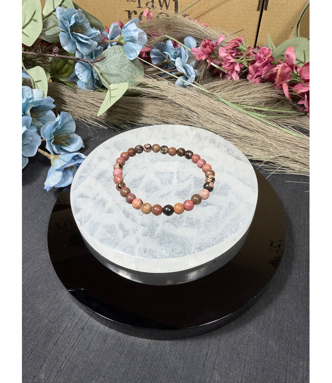All natural rhodonite gemstone bead bracelet