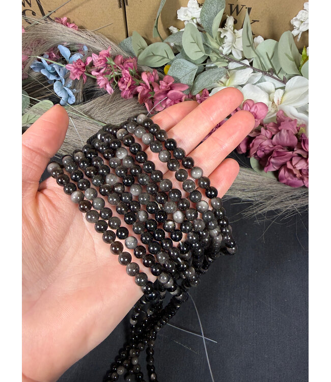 Genuine Silver Sheen Obsidian Round Beads.